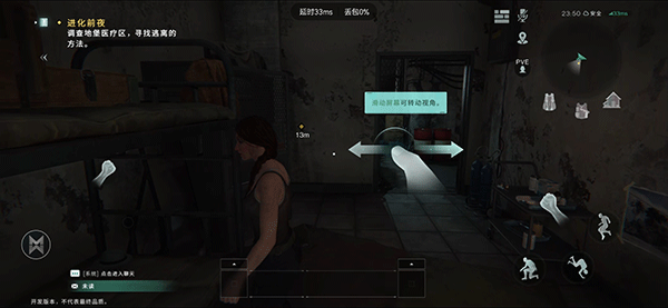2、滑动右边屏幕转动视角。